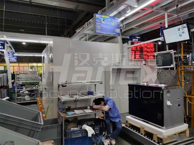 ? 流水線異音測試房板采用拼裝式結(jié)構(gòu),工廠預(yù)制現(xiàn)場拼裝,吸聲墻體采用鈑金框架方式,板塊與板塊之間采用螺絲緊固方式,拆卸與安裝方便。