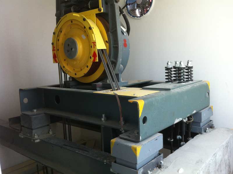 在電梯曳引機底座加裝分體式金屬減振平臺,將振動聲源與地面、四周的墻體做隔離;電梯的主要固體剛性連接替換成軟性彈性連接,削弱剛性連接的傳聲;根據具體的噪聲情況對電梯機房、室內等進行低頻噪音治理。